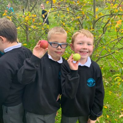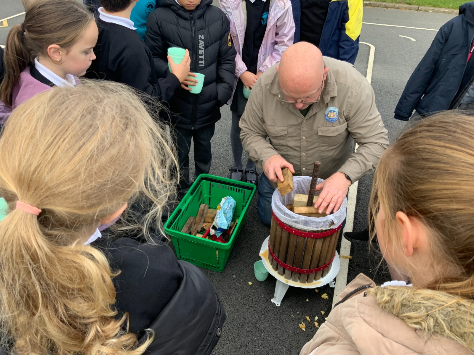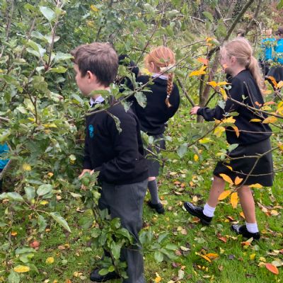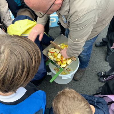 Primary 5 picked apples from the trees and were taught how to press them.